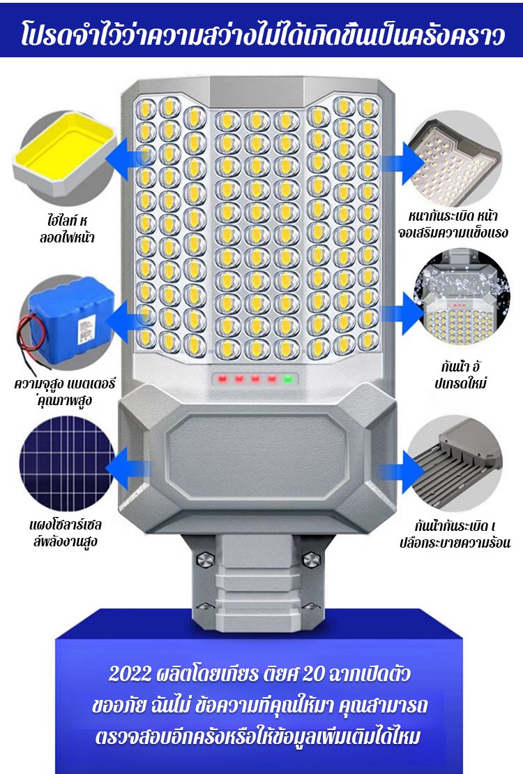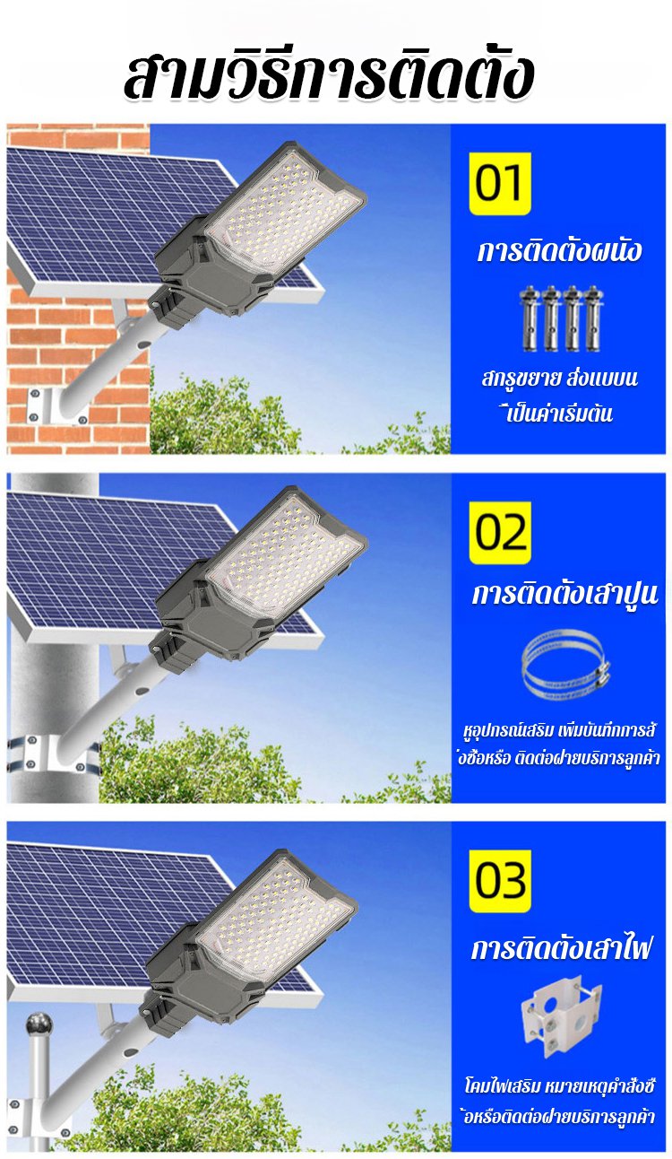 【TT ขายดี】โคมไฟถนนพลังงานแสงอาทิตย์กำลังสูง